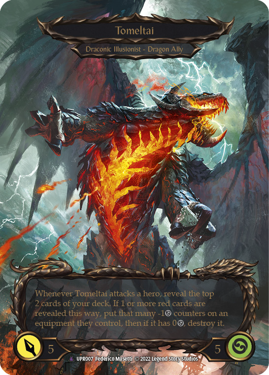 A legendary invocation to transform a chosen ash you possess into Tomeltai. Go again